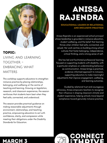 join us for a 2 day workshop series for preschool and primary educators and, allied health professionals. Speakers and further details below.